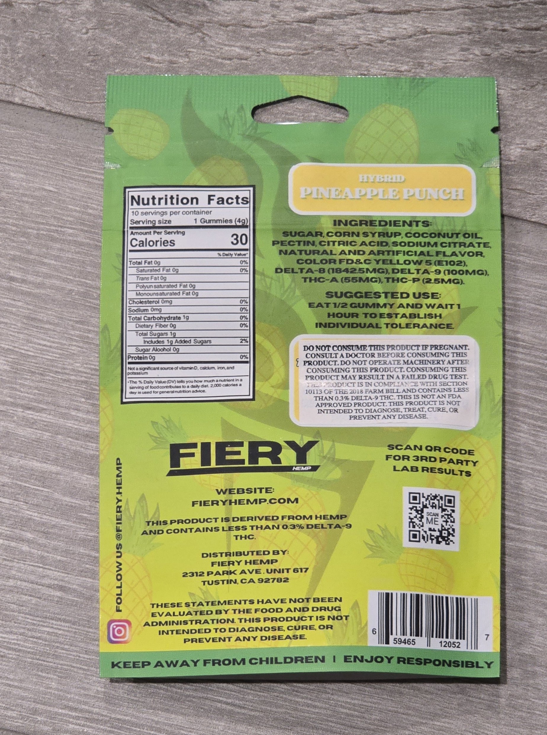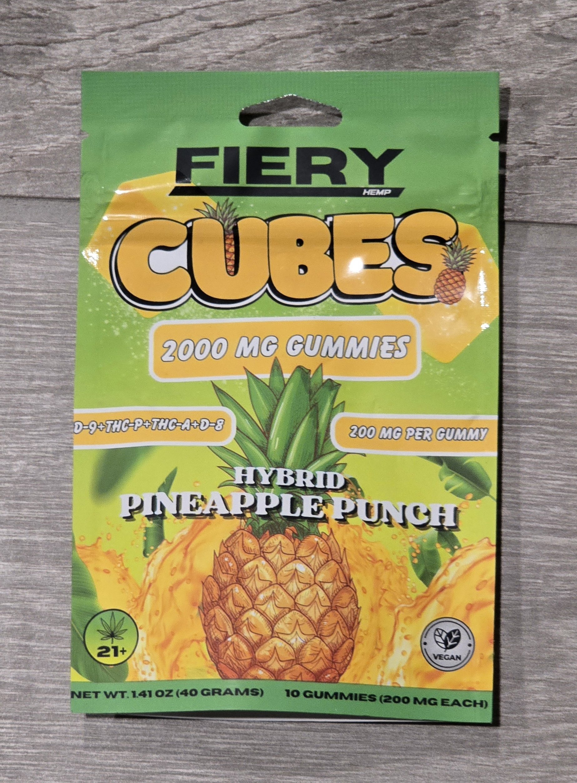 FIERY CUBES 2000MG GUMMY 10CT HYBRID PINEAPPLE PUNCH