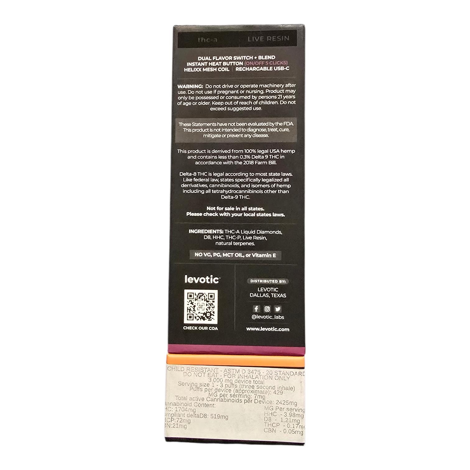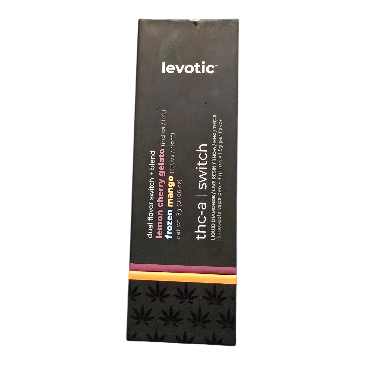 LEVOTIC DISPOSABLE 3GRAM THCA DUAL FLAVOR + BLEND MODE INDICA LEMON CHERRY GELATO / SATIVA FROZEN MANGO
